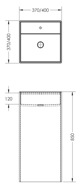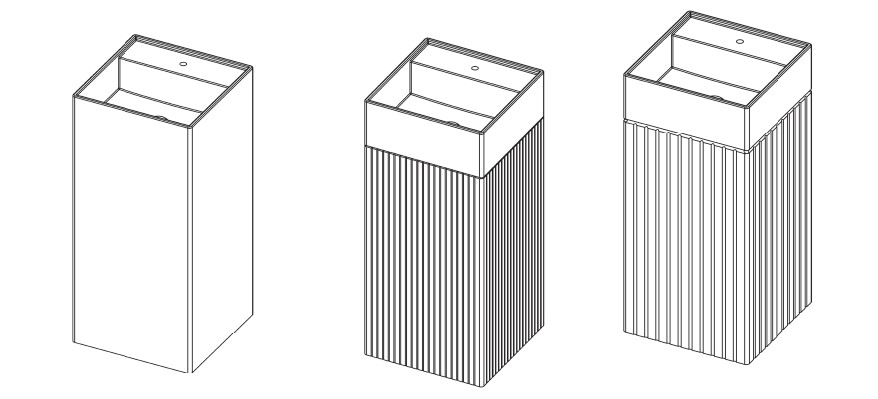 כיור אמבטיה עומד גוון לבן מט קוריאן דגם קורינה מחורץ או חלק מרובע 40/37 ס"מ